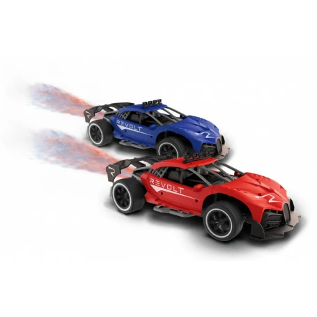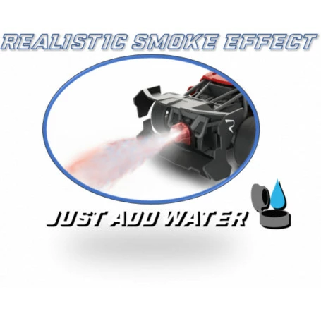 VAPOR RACERS feature realistic light, sound and smoke effects! Simply add water! 2.4 GHz easy to control, full function vehicle to move in all directions. Available in Red & Blue colors. Includes rechargeable LiPo battery and USB charging cable.