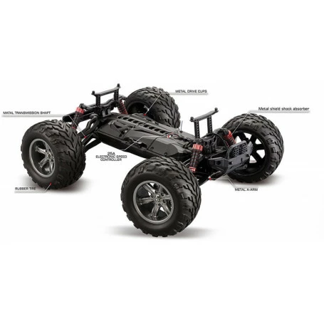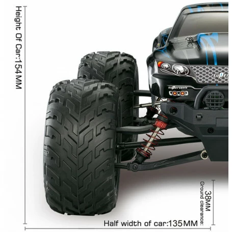 This RC model has an updated 2s 7.4v battery, a new transmitter, updated plastics, shocks, and drivetrain. The battery is a 7.4v 1500ma li-ion with 40km top speed, 80m range, 20min play time, and 2h charge time. 1. The charger has charging voltage limiting protection. 2. The battery adopts over discharge protection and low voltage protection. 3. The circuit board has overheat protection function. 4. The whole car has bearings, metal transmission shaft, and transmission cup.
